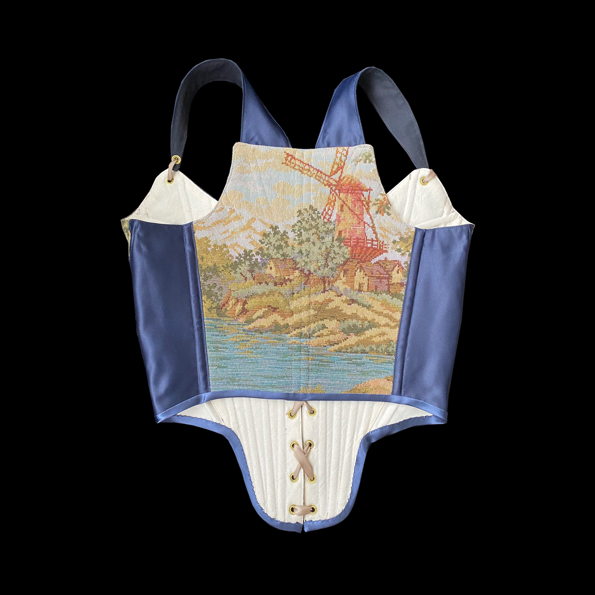recycled from antique tapestry and combined with silk and lining from the local fabric store