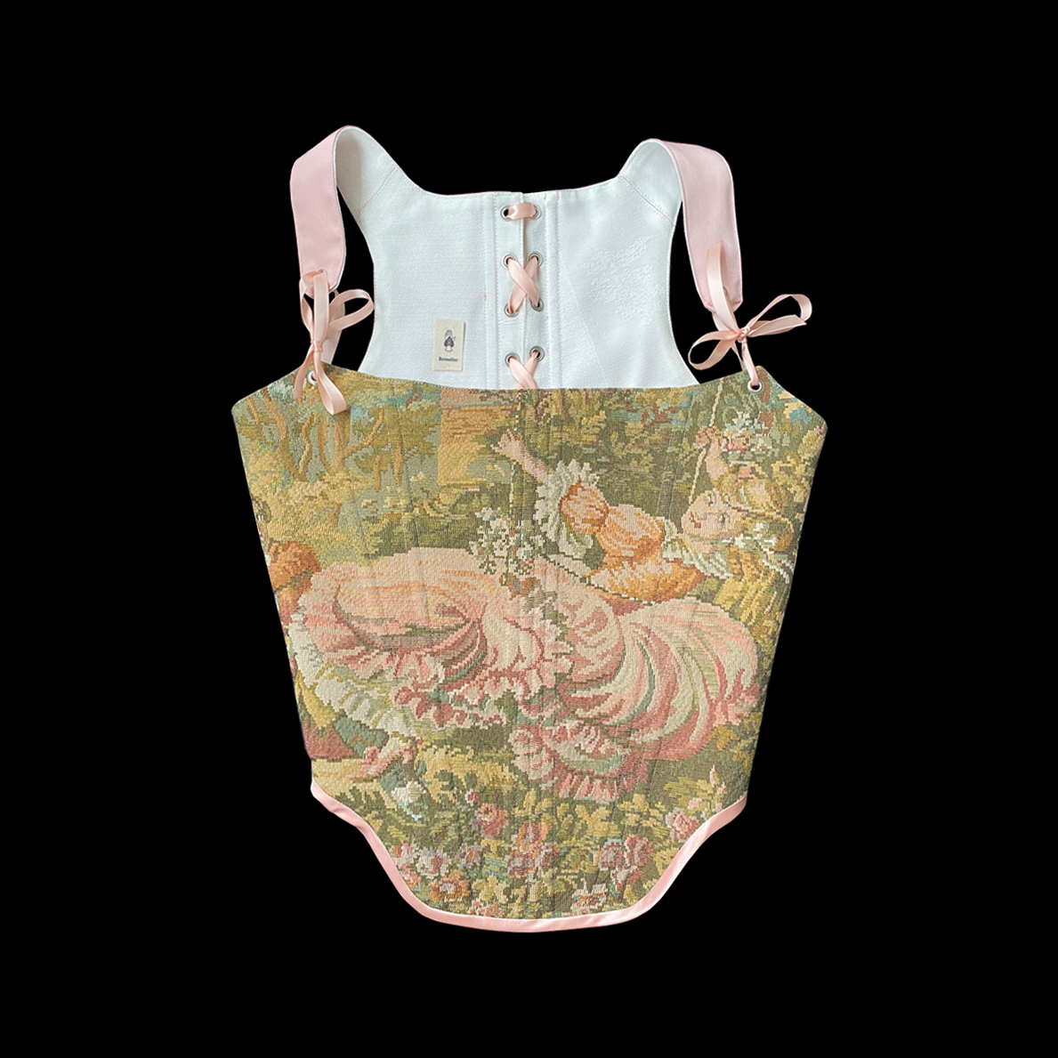 antique tapestry corset after Fragonard ‘The Swing’
