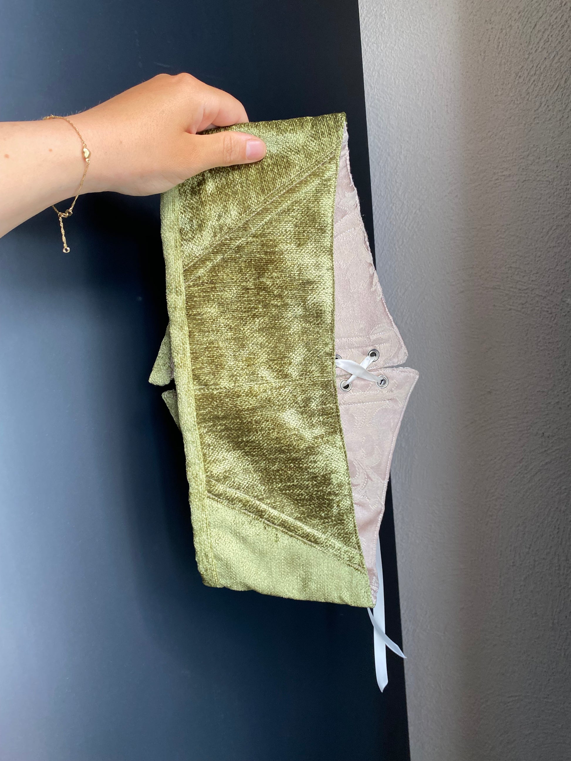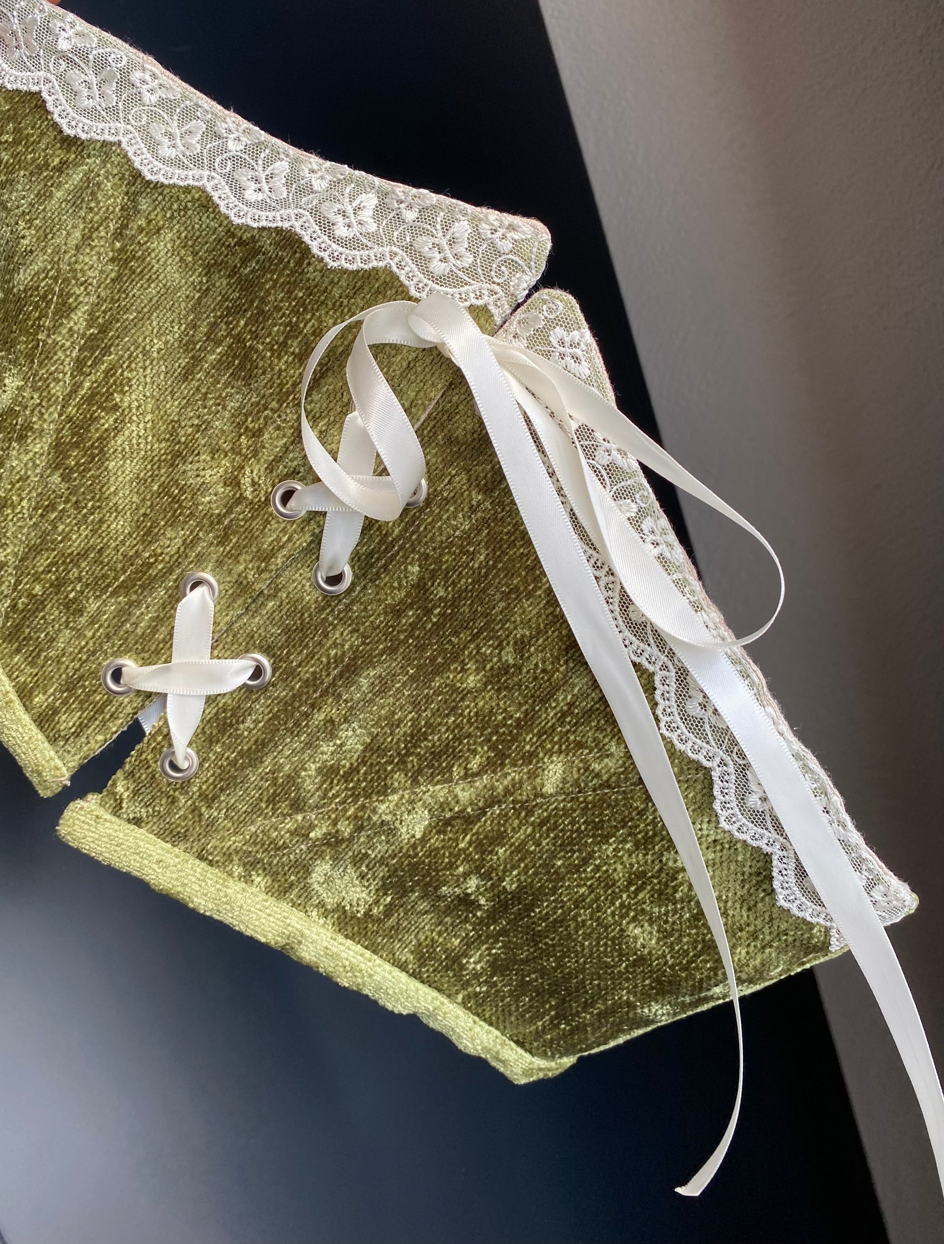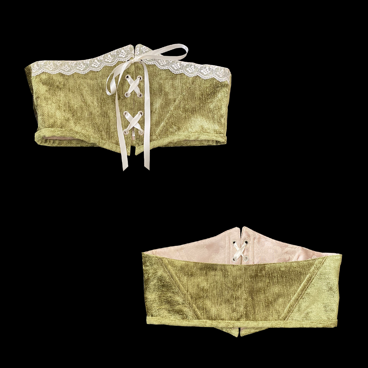 velvet belt with butterfly lace trim
